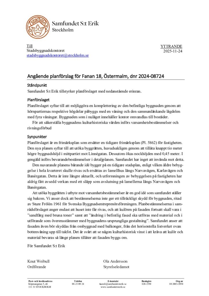 Östermalmstorg, skrivelse till kommunstyrelsen med kopia till byggnads- och trafiksnämnden, 20210928