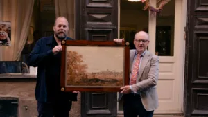 På bild Samfundet S:t Eriks ordförande Knut Weibull och Fredrik Linder chef för Stadsmuseet i Stockholm.